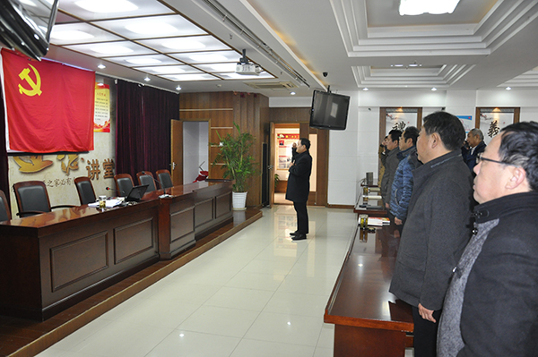 会上,与会人员还进行了重温入党誓词,并观看了党史纪录片《西柏坡党旗飘扬》。