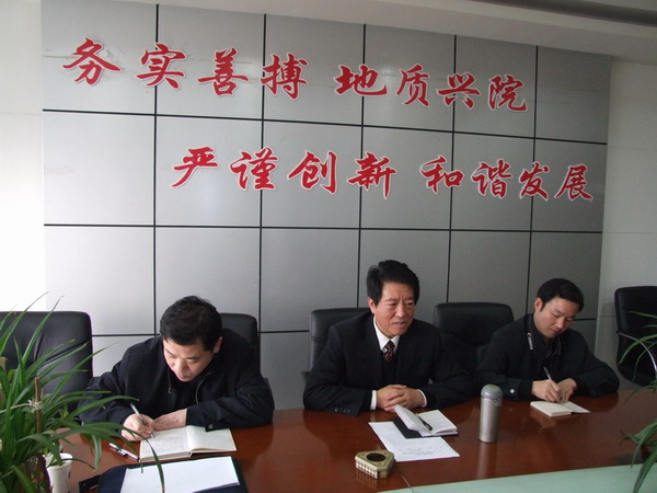 4月5日,省地矿局吴玉龙局长亲临我院检查指导工作,反馈对领导班子和领导干部的考核情况,与班子成员一一进行了交谈,对我院在领导班子建设和职工队伍建设方面所取得的成绩给予了充分肯定,对今后的工作提出了希望和要求,并察看了驻区建设和职工生活。